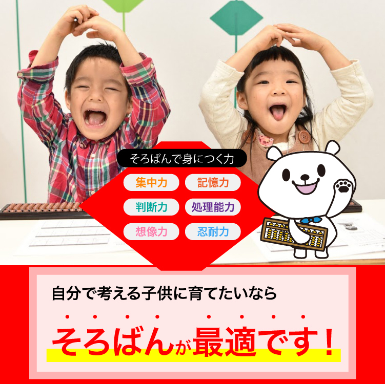 右脳教育に効果的な幼児期にそろばんをはじめるお子さんが増えています。